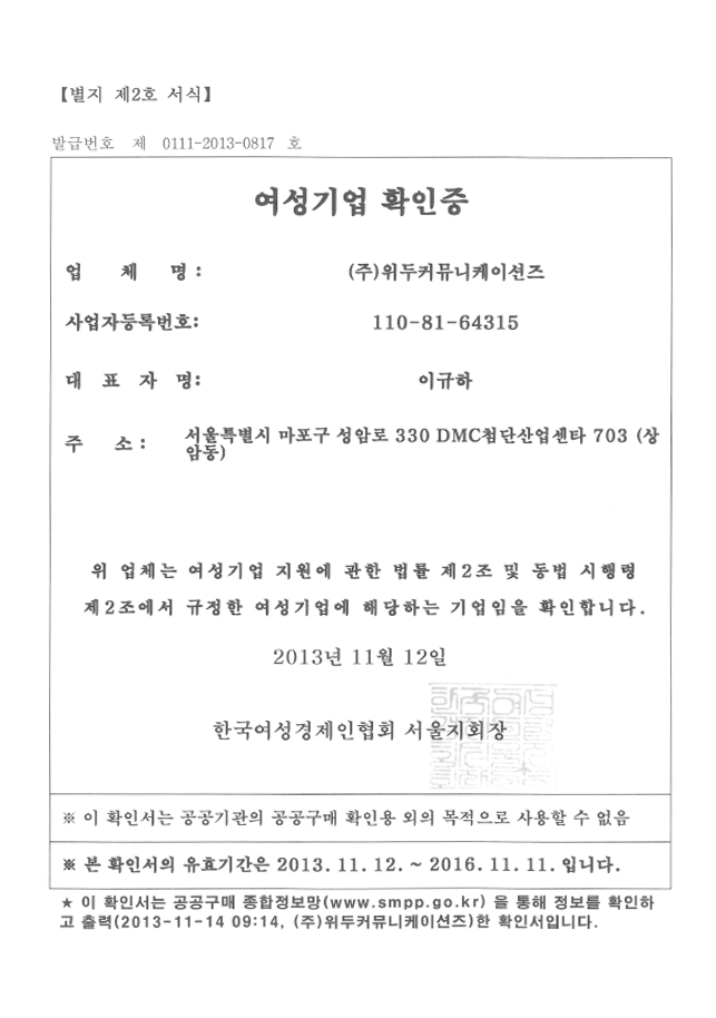ㆍ 법인설립(박정호 장은숙 공동대표)