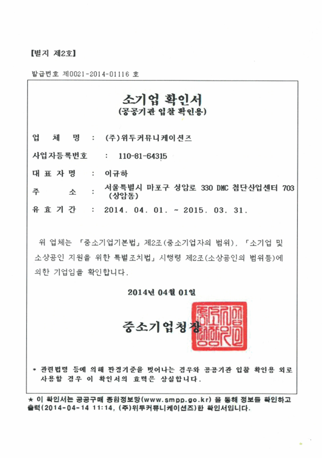 ㆍ 병무청 병역 특례업체 지정