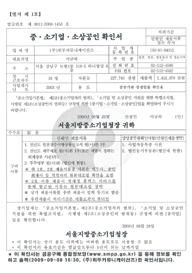 ㆍ 중소기업청 기업혁신형 중소기업(INNO-BIZ) 선정